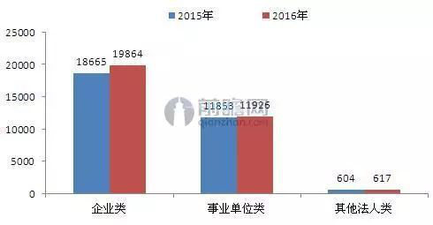 从机构属性来看,2016年企业类型的检验检测机构19864家,占机构总量61.93%;事业单位类型11926家,占机构总量36.11%;其他法 人类型617家,占机构总量1.96%。近四年来,事业单位制检验检测机构的比重分别为42.55%、40.58%、38.09%、36.11%,呈现逐 年下降趋势,与近年来我国加快推动事业单位分类改革、检验检测认证机构转企改制的趋势一致。