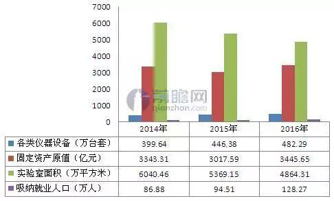 从检验检测资源状况看,2016年全国检验检测服务业共吸纳就业人口共计128.27万人,各类仪器设备482.29台套,固定资产原值 34456.65亿元,实验室面积4846.21万平方米。截至2016年底,全国检验检测机构中获得高新技术企业认定的机构数1800多家,我国检验检 测服务业的综合实力明显增强,发展质量有所提升。