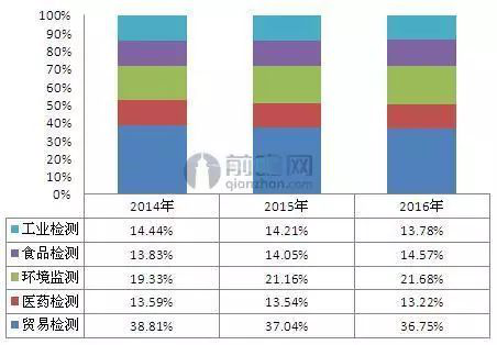 图表6:2014-2016年质量检验检测细分市场结构(单位:%)